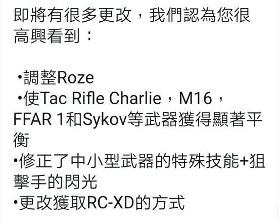 在新赛季到来之际,官方对于游戏平衡性做出了一系列的改动,除了在人物方面有一些调整,最重要的是对于武器进行了大规模BUG修复和强度平衡。其中战术步枪C、M16、FFAR1、Sykov等均有大小不等改动。这样改动不仅提高了游戏竞技性,对于玩家来说,也有机会在游戏中接触更多武器,增添了游戏乐趣。官方对于MW枪和狙击镜BUG也进行了修复,以后大家再也不用担心狙击镜反光问题了。