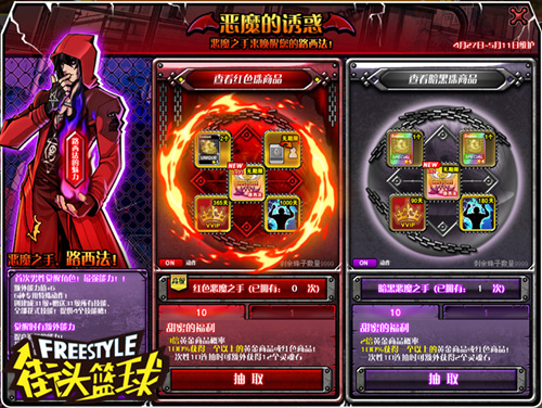 使用红色恶魔之手10连抽将会拥有3倍的黄金商品概率,100%获得1个以上的黄金商品或者红色商品!还可外获得12个灵魂石,灵魂石可以直接兑换路西法或者其他极品奖励!