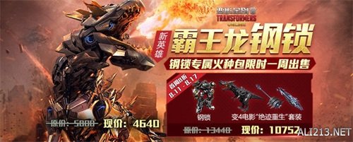 在正式登录游戏的首周,钢锁汽车人英雄将限时一周8折售卖,钢锁专属火种包、英雄包以及英雄、武器皮肤套装礼包同步限时折售。想要以最优性价比入手这位《变形金刚OL》史上首位恐龙战士的玩家,千万不要错过限时折售!还有专属钢锁活跃活动上线,操控钢锁杀敌即得奖励哟。