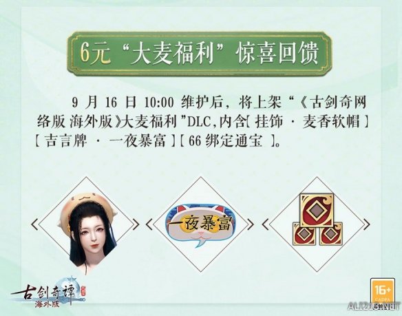 今日更新维护后,《古剑奇谭网络版 海外版》将上架“大麦福利”DLC!内含超值赠礼,超划算哦!