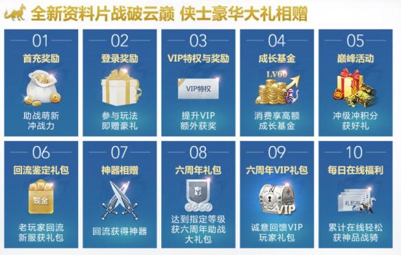 除了这些,玩家们还将享受到《武魂2》六周年特别福利。神器战骑免费送、VIP等级免费领,还有各类丰厚、实用的道具及材料送上,让玩家们整装齐备、共踏资料片新征程!
