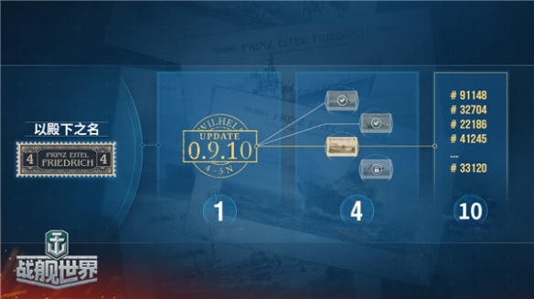 作为年末版本,这次0.9.10的新内容中自然少不了大型战役的登场,以“弗雷德里希王子”为主题的冬季战役将贯穿年末乃至年初的战斗季,在游戏内,埃特尔·弗雷德里希王子同时也是新舰船的名字,作为一艘麦肯森级大型巡洋舰,其搭载了8门350毫米主炮,并装备了可靠的装甲。