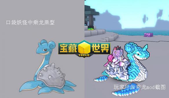 提到口袋妖怪中的小精灵们,你一定会如数家珍,皮卡丘呀,喷火龙呀,妙蛙花呀等等,但是其中的乘龙你一定也不陌生。它拥有水蓝色带斑点的皮肤,长长的脖子,背上还有灰色甲克,是一个超温柔的小精灵。它能理解人类语言,可以载人航海,乐于助人,非常惹人喜欢。现在,乘龙来到《宝藏世界》啦,有爱玩家你嘿帅制作的乘龙mod神还原了原作中的乘龙小精灵,无论是头部后侧的两只卷曲的耳朵,还是额头郑重的短角,还是前肢大于后肢的鳍,都和原作中的神奇宝贝超级想象。《宝藏世界》的乘龙坐骑可以在陆地行走,也能在水中遨游哦!想要捕捉乘龙的小伙伴前往官网一键订阅即可成功获得哦!