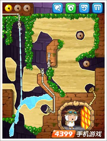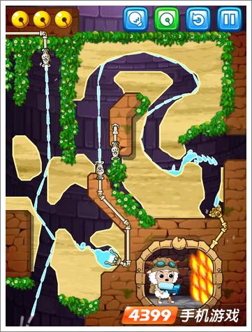 第三步:根据水流的重力和惯性冲掉第三个铃铛,快速打通下面的管道,即可过关。
