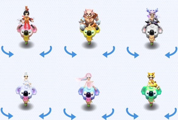 当大家获得这款可爱的“考拉抱抱”飞行祥瑞后,可以选择一些华丽锦衣与之搭配,穿出个性时尚风,与考拉宝宝一起成为三界当中最吸引人的存在。在所有锦衣当中,大家可以穿上最近新出的“元夕歌”锦衣,而配合上“星河乐章”和“雪眸影”则会给大家一种进入童话世界的感觉。除此之外,像“林间精灵”以及“可爱猫猫装”锦衣也是不错的选择。而当虎头怪穿上“大灰狼与小红帽”这款锦衣并骑上考拉宝宝后,则充满了搞笑元素,值得大家去游戏中亲自尝试。