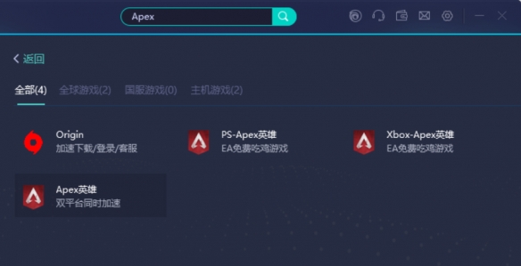 第一步:打开UU在顶部搜索栏输入“Apex”,选择“Apex英雄”游戏,并进行加速。(加速前必须退出Steam,再进行操作)