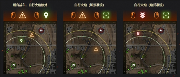 比如,自行火炮可以在火炮模式下左键点击小地图,提醒队友将要攻击的点或区域。而在场景模式下进行此操作则会提醒队友注意该区域。