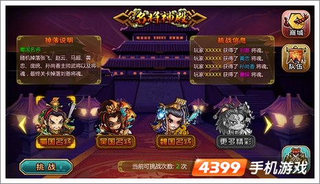 名将神殿功能开放。名将神殿分多个势力,分别掉落势力所属的武将、主帅以及将魂,总共有九波怪物的攻击,在打掉第九波怪物的攻击之后,会掉落对应势力所属的主公角色武将的紫色帅魂。