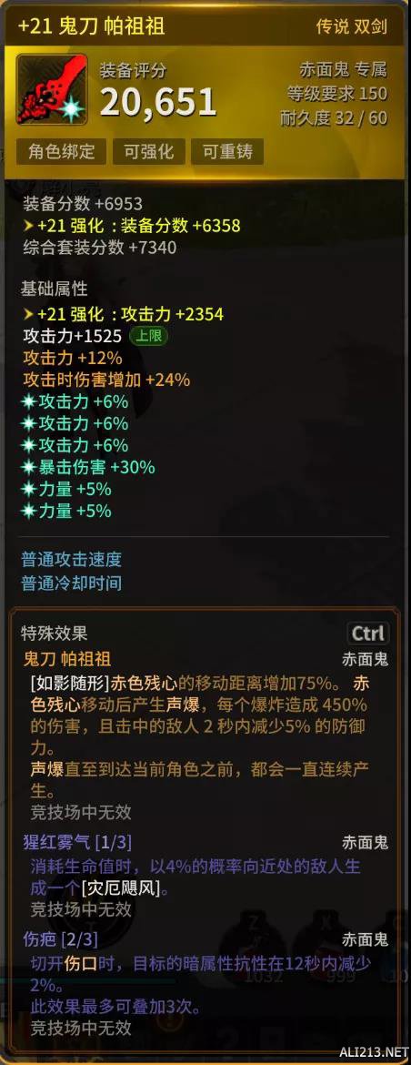 赤面鬼专属双剑,这20651的装备评分!攻击力、暴伤、力量等珍贵词条大幅增伤,和大神单人PK会被一刀秒吧!(跪求大神刀下留人~)