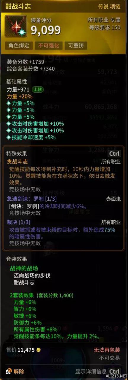 【战神的狂气】三件套神装!3套装效果:对普通怪物伤害增加5%;每一件套装都带上了6条暴击伤害、力量、所有攻击伤害等珍贵词条;附带【光明】、【伤疤】、【伤口撕裂】等特殊效果更是对敌人造成高额伤害!