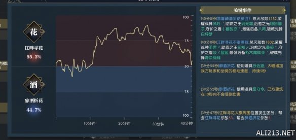 最终醉酒折花只以大旗血量76%:75.999%(0.001%之差)的微弱优势战胜了江畔寻花,用耐久度换取了胜利。