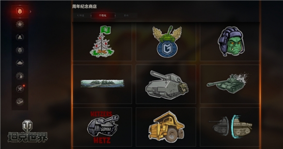 完成周年任务可以获得周年纪念币奖励。您可以使用这一特殊的活动代币在周年庆商店中购买各类独特货品。大部分货品是《坦克世界》10周年纪念收藏的一部分,包括贴花、徽章、签名以及大量2D风格,这些新风格描述了游戏漫长而有趣的历史。如果您是坦克个性化的忠实爱好者,那可以购买它们装饰你的坦克,让其看起来更加的与众不同!此外,周年庆商店中还会出售一系列战前指令,这些个人储备能提升坦克在一场战斗中的性能。