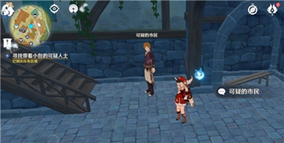 如图,任务期间在酒馆附近会新增一个叫可疑的市民的NPC,我们要找的就是他了