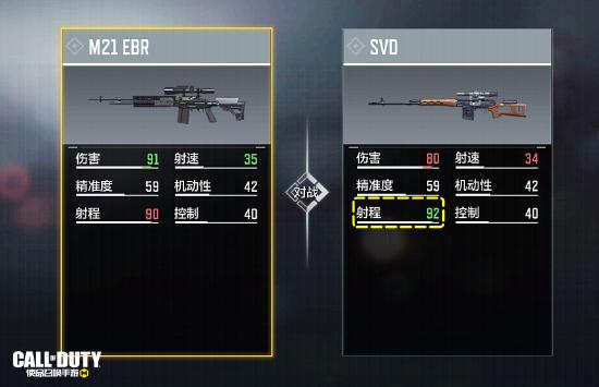 作为一支默认载弹量达到10发的半自动狙击步枪,SVD和老大哥M21 EBR尽管在伤害、射速、射程上各有千秋,但总体六维属性可谓不分伯仲,二者差异并不明显。