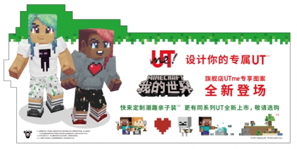 即日起《我的世界》x优衣库合作系列UT将登陆优衣库国内各大线下门店及线上商店全面发售,同款皮肤也在游戏【资源中心】上架。冒险家们不仅可以在现实中穿着精美的联名UT,还能在游戏中拥有同款皮肤,与小伙伴们在方块世界中尽情探险!