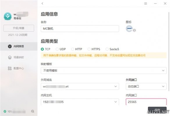Step2: xz并注册登录花生壳,对《我的世界Minecraft》服务器进行端口映射,在花生壳界面,只需要正确填写游戏服务器IP和游戏默认端口25565即可,花生壳将自动生成一个外网访问地址。